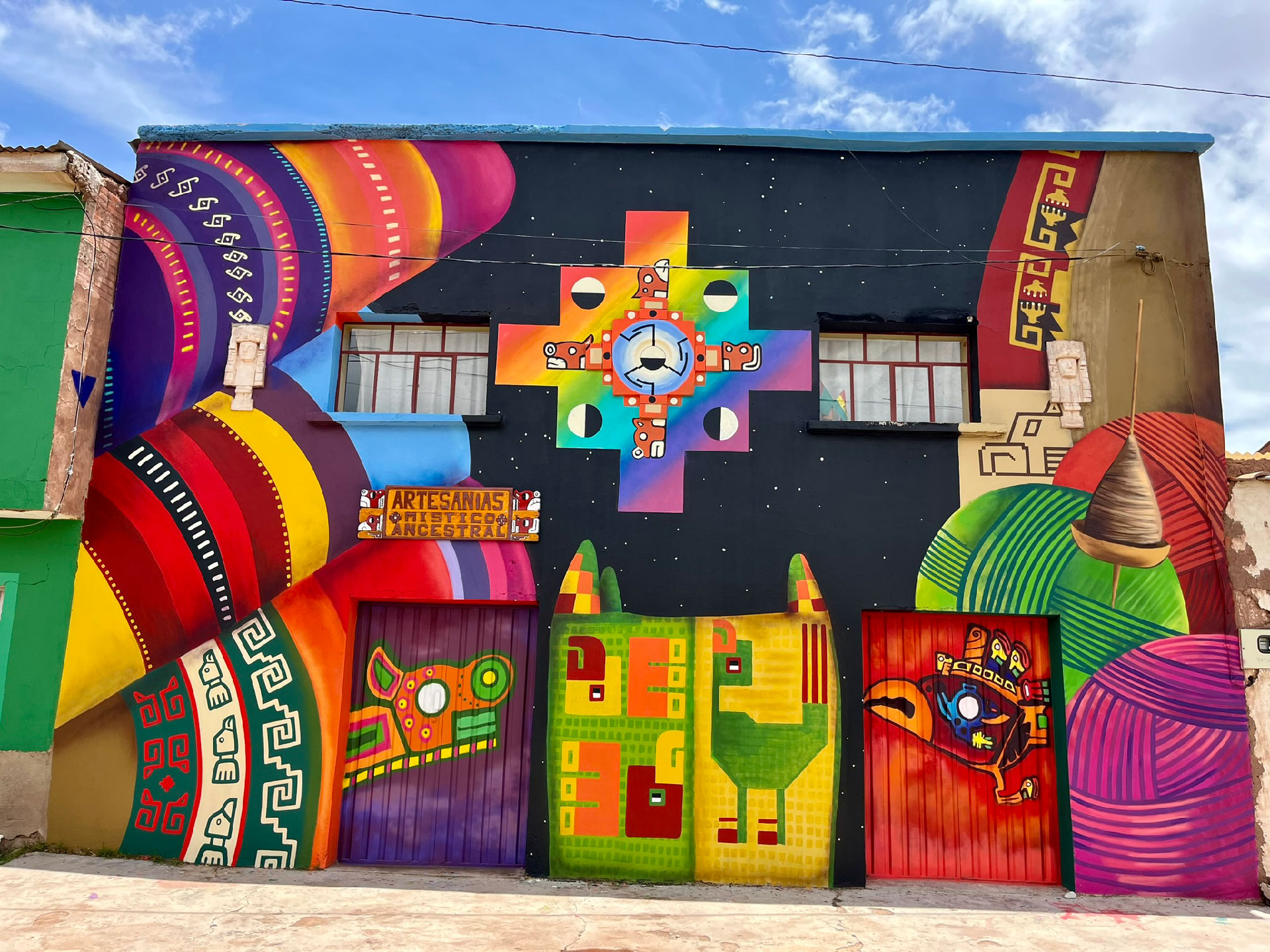 Un paseo visual donde cada mural transmite historias y valores únicos, integrando elementos como la cosmovisión andina, el turismo comunitario y las tradiciones artesanales.